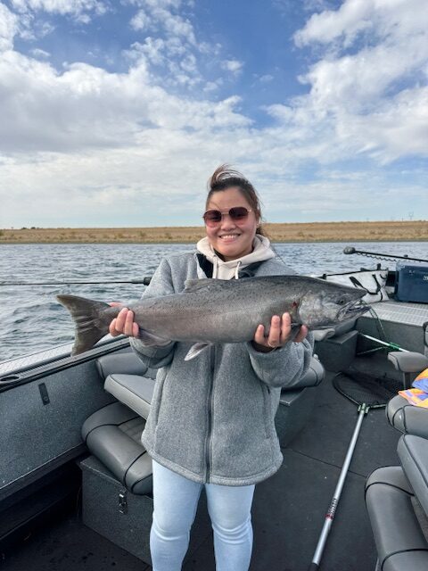 It was back to the Hanford Reach today for Pro Guides Mike and Miles, this time in search of some fall Chinook salmon. The morning started with back-trolling setups, and while there were a few drive-bys, the crew managed to put a solid fish in the boat to kick things off.