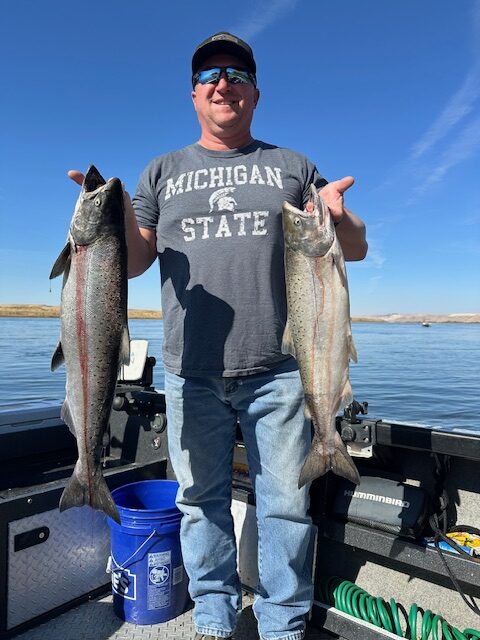 The bite was on fire all day, but what made it special was the crew itself—lots of laughs, great energy, and a team that knows how to have a good time on the water. We’re thankful for the continued support from CED and Johnson Lighting, and we’re proud to make their annual trip one to remember. That’s what Fishers Catch Outfitters is all about—building relationships, creating traditions, and putting fish in the boat year after year. While we were on the walleye and sturgeon Pro Guide Miles hit the Hanford Reach and put Benton County Fire Captain Rob on some chinooks. What a great and successful day on the water for all captains