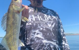 The walleye fishing on the Columbia River has been good to even great. Lots of fish being caught and lots of fun had! The Fishers Catch Outfitters crew is currently fishing bellow McNary dam on the Columbia River. We are targeting walleye in 45-50 feet of water with worm harnesses as well a jigs. Success with both presentations is putting a number of walleye in the Les Schwab boat. The colors we are currently doing well with is greens on 1.1 smile blades and Chocolate Chip, Key Lime, Shrimp and Glitter bug on jigs. If you are looking to get out on the water and get in on some of this great walleye fishing, give us here at FCO-Fishers Catch Outfitters a call 509.727.7137