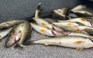 The Fishers Catch Outfitters crew go on the walleye bite today. With the group from the Othello freezer plant the walleye we flying in the boat. We managed to catch a number of walleye with not all of them making it to the bucket. Plenty for the team to take home and plenty to release. The winning process for todays catching was jigging silver blades and jigs, Rainbow Trout and Glitter Bug mad it happen for this crew. Fish fry in their future. If you are looking to get out on a fishing adventure give us a call 509.727.7137.