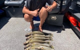 Chad and Kobe cam back for another trip with Fishers Catch Outfitters. We set out looking for the great eating fish of the Columbia , walleye. It was not a disappointing day with the fishing wanting to bite. It was a little bit of a mix bag day with Kobe even landing a small sturgeon. Plenty of walleye and bass action the boys managed to boat 40 fish throughout the day and took 3 nice bags of walleye and bass fillets home. If you are looking to get out on the water and put some of these awesome eating fish in your freezer give us a call her at Fishers Catch Outfitters @ 509-727-7137. Here are some pictures from this outstanding day!