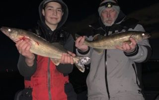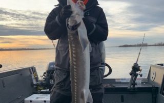 It was time to ring in the New Year with some keeper sturgeon fishing. We set out on the 1st to find some sturgeon in the slot limit of 43"-54" , but with the wind blowing 20-25 mph it made if difficult to fish and even more difficult to e see and feel the bites. With the first not letting up the Fishers Catch Outfitters crew py the Les Schwab boat on the trailer and called is a day. We set out today in search of them again. Little better fishing conditions today. The wind was blowing on the am so we got and afternoon start and fished into he evening for Walleye after we did and afternoon of Sturgeon. We did not land any keeper sturgeon but did manage some nice walleye.