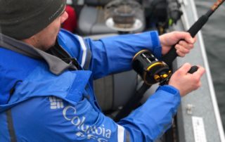 With David and his son joining is from Columbia Gear we set out to try some new gear in some wet weather chasing the Columbia River White Sturgeon. With neither of them ever catching a sturgeon we wanted to get them on a river monster and a keep! It was a cold wet day as mother nature promised us. Even with the weather we managed to get the fish to the boat and had a great time. We only fished for 1/2 day due to the wind and weather but all in all it was an awesome day and the Fishers Catch Outfitters crew looks forward to having Columbia Gear out for another trip!
