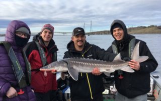 The Fishers Catch Outfitters crew got to spent New Years day on the water with a group from Salt Lake City chasing Columbia River white Sturgeon. Today was opening day to retain one of these great fish for the grill. We managed to catch a couple nice fish, one in the slow and one monster. Here are some great pictures of the awesome day on the water.
