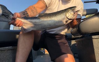 Started the morning down low on the river. We had a nice first pass with the landing of a nice Coho Salmon, fist Coho of the year. Second pass produced another solid rip that we just did not get in time before the fish decided to let go. After a couple more passes the Fishers Catch Outfitters / Les Schwab boat headed up river to fish another stretch of the Columbia River. With no success at the second or third spot we took off and headed for the infamous Ringold Area up in the Hanford Reach. With several passes through the 31 hole and no success we headed back down river. Making a stop in 300 / self landing area. With the Velocity Rods only in the water a minute or two we get one to bend over with a nice Columbia River fall Chinook, welcome aboard nook! Tony and I finished the day with [...]