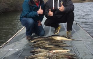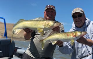 With the Big Columbia river running strong, dams wide open and the wind settled down. The Fishers Catch Outfitters crew hit the water in search of some Walleye. With a couple special guests from her and the down under we got to work in the morning cranking up some nice Walleye. The am bite was good and we stayed on them for a while. Once it slowed up a little we decided to get after them a little deeper with 4W jigs. Jigging the 30-40 of water produced some more nice walleye. We ended the day putting 31 walleye in the box and 2 big smiles on the clients. Be sure to get out fishing!! Bent rods and tight lines!