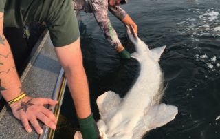 Fishers Catch Outfitters and Senske Services spent the day on the Columbia River Chasing the infamous White Sturgeon. The crew from Senske Services wanted to go catch river monster for their team building day. Well we did just that we landed a total of 6 great Sturgeon and on that measured 9'3". The men on the boat each got to take a little time fighting this great fish while the Sturdy Ladies waited for the opportunity to come. Fun crew to fish with, lots of great laughs and even Chuck got a little seas sick........