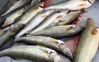 Pro Guide Steve hit the water today with his buddy in search of a few eater walleye for a fish dinner. The river was muddy and the conditions weren’t ideal, but they put in the work and tracked down exactly the fish they were after. A little effort, a lot of patience, and they ended the day with the perfect haul for a fresh walleye meal.