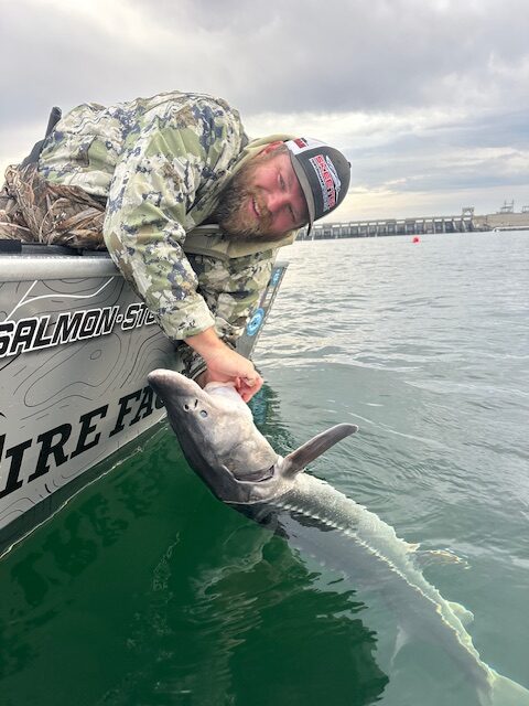 Back to the dinos we go. We hit the water today out of Umatilla, Oregon in search of Columbia River sturgeon, and the action didn’t disappoint. It’s been nonstop around here with the FCO team bouncing between walleye, sturgeon, and perch.