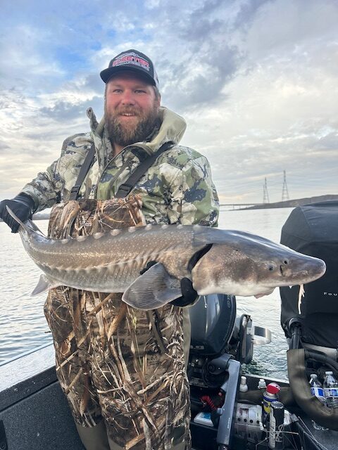 Back to the dinos we go. We hit the water today out of Umatilla, Oregon in search of Columbia River sturgeon, and the action didn’t disappoint. It’s been nonstop around here with the FCO team bouncing between walleye, sturgeon, and perch.